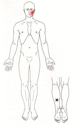 「頬が痛む」からと言って頬の治療をしても痛みは軽減せず、ヒラメ筋のトリガーポイントを弛めると痛みが緩和するという事です。
